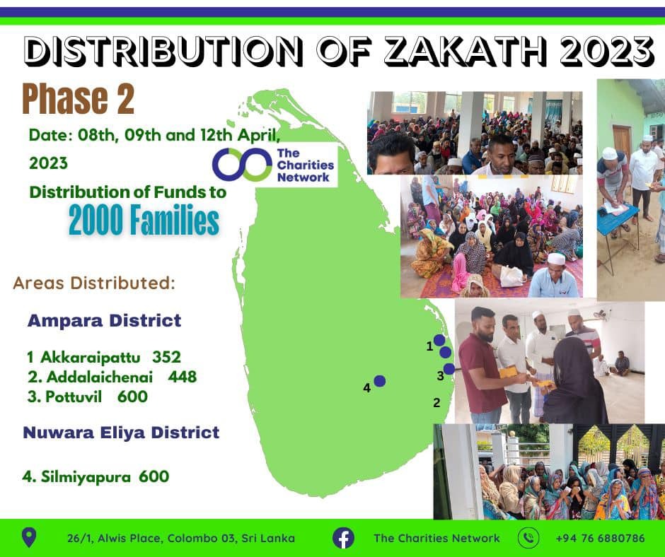 In 2022, Zakath funds were distributed amongst 11,434 needy muslim families in the following 16 districts.